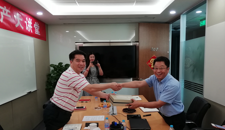 亿百体育董事長郭續長先生也在培訓過程中就關切的問題進行了詢問,對馮總的演講和泰康資管的管理理念表示高度認同。最後,董事長代表公司向馮總送上了亿百体育人精心準備的小禮物并進行合影留念。