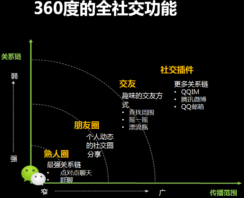 一般情況下,社交關系鍊越強,傳播範圍越窄,社交關系鍊越弱,傳播範圍越強。